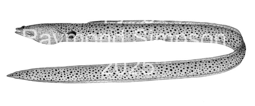Echiophis mordax is a synonym used for intermediate sized spotted specimens from the NW GOM. There is a broad overlap with O. punctifer. The two described species can be separated using vertebral counts and color pattern.
